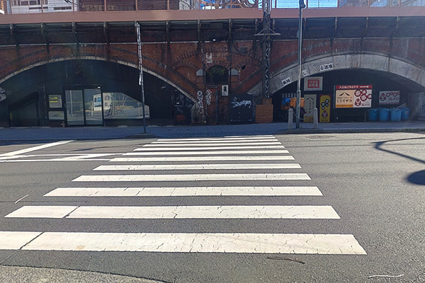 地下鉄新橋駅出口「5」を出てすぐの向かいにセブンイレブンが見える信号を渡って、右に曲がります。 一つ目の横断歩道を渡って、左に行くと入口が見えます。